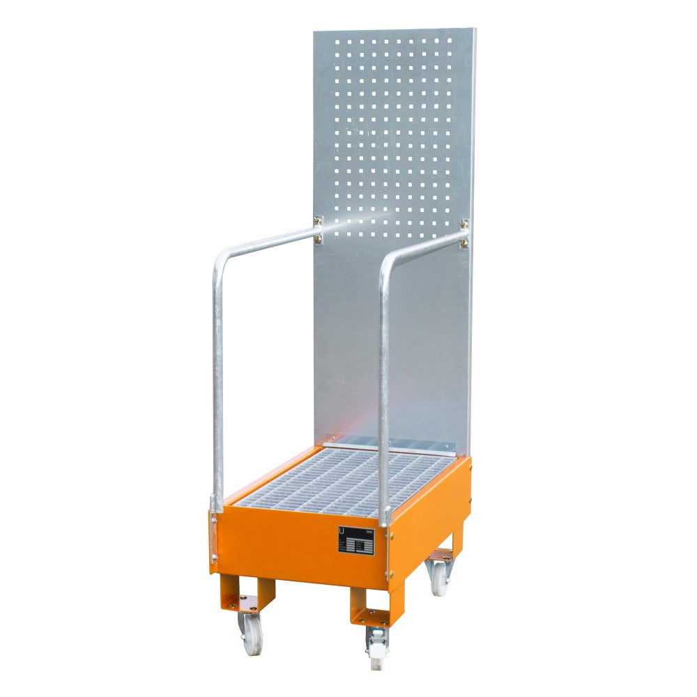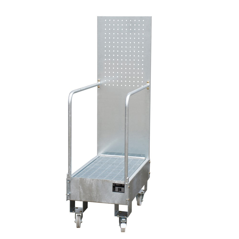 Uppsamlingskärlet har ett Galvaniserat galler med en lastkapacitet 1000 kg/m² och Varmförzinkade handtag. En Robust perforerad bakpanel i galvaniserad stålplåt med 10 x 10 mm fyrkantiga hål, ett rakt radmönster med 38 mm mellanrum gör att verktygshållare kan placeras efter behov. Kärlet rymmer 73 liter.