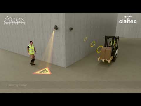 Observera att i videon är varsel projektorn kopplad med en Crossing Radar för att starta automatiskt när en truck är på väg in i området. Detta är ett tillbehör.